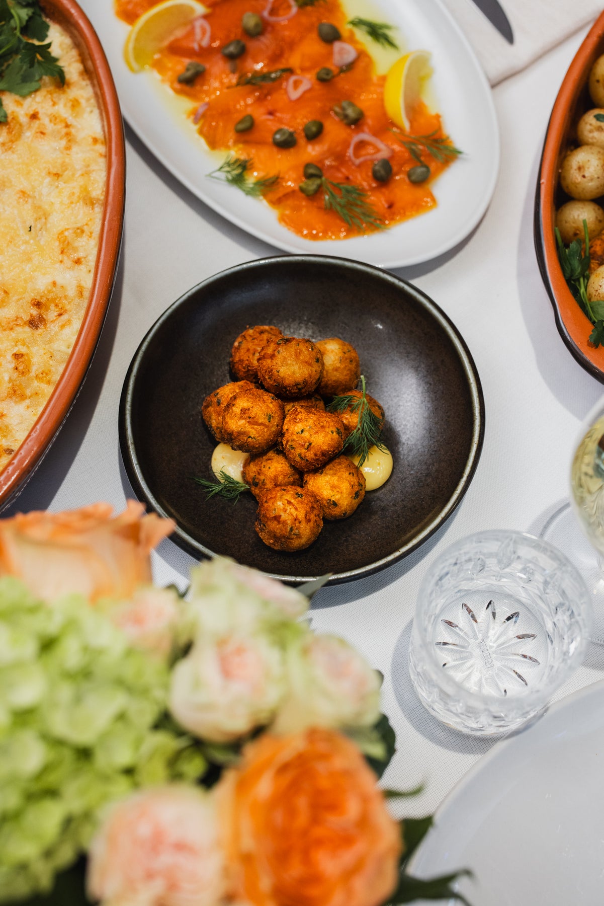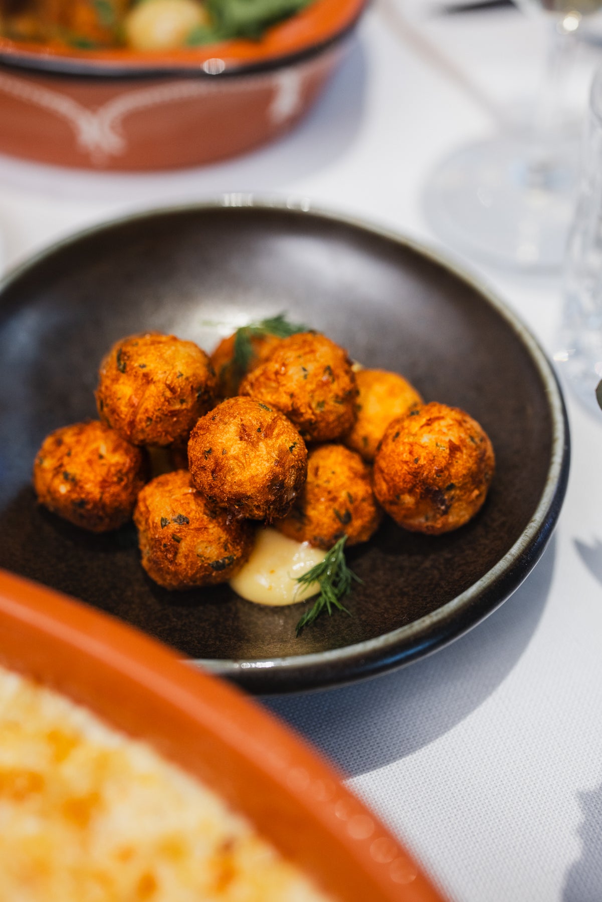 Douze accras de morue maison avec accompagnement de mayo piri piri.