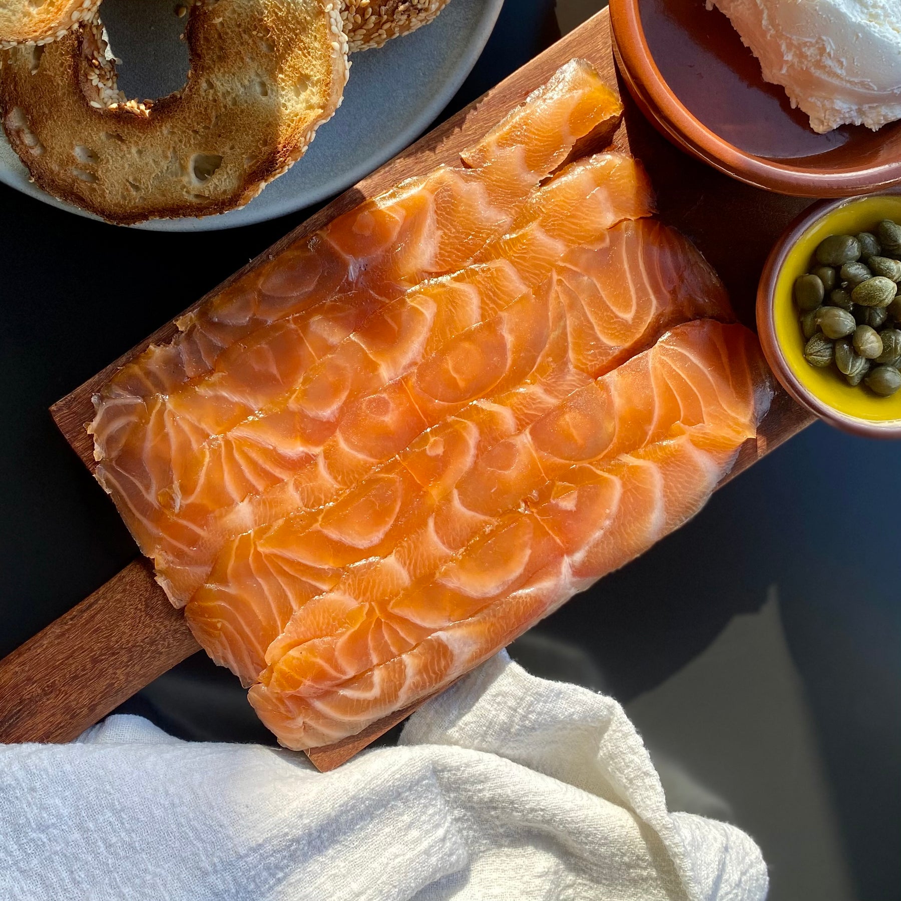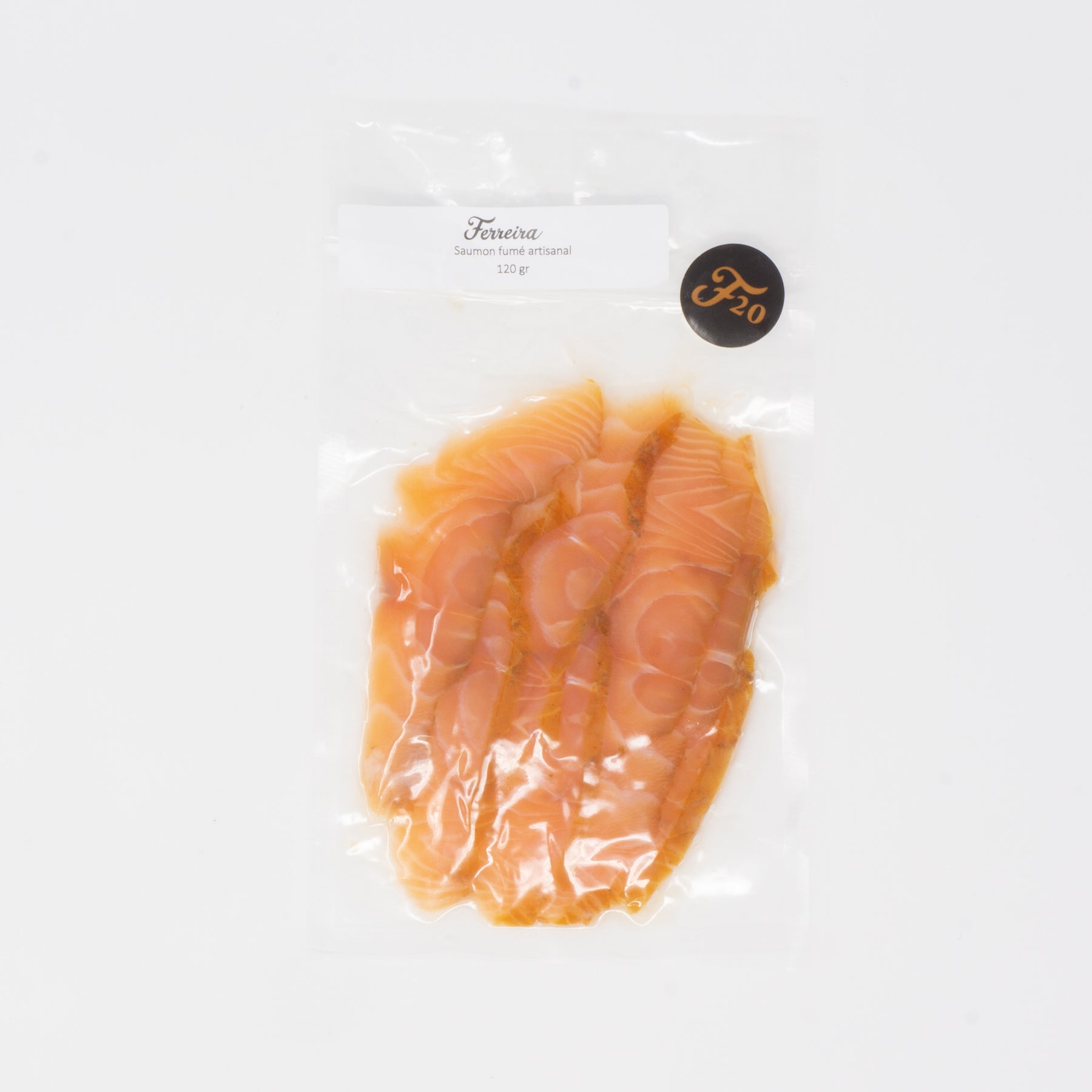 120 gr de saumon fumé fait maison emballé sous-vide.